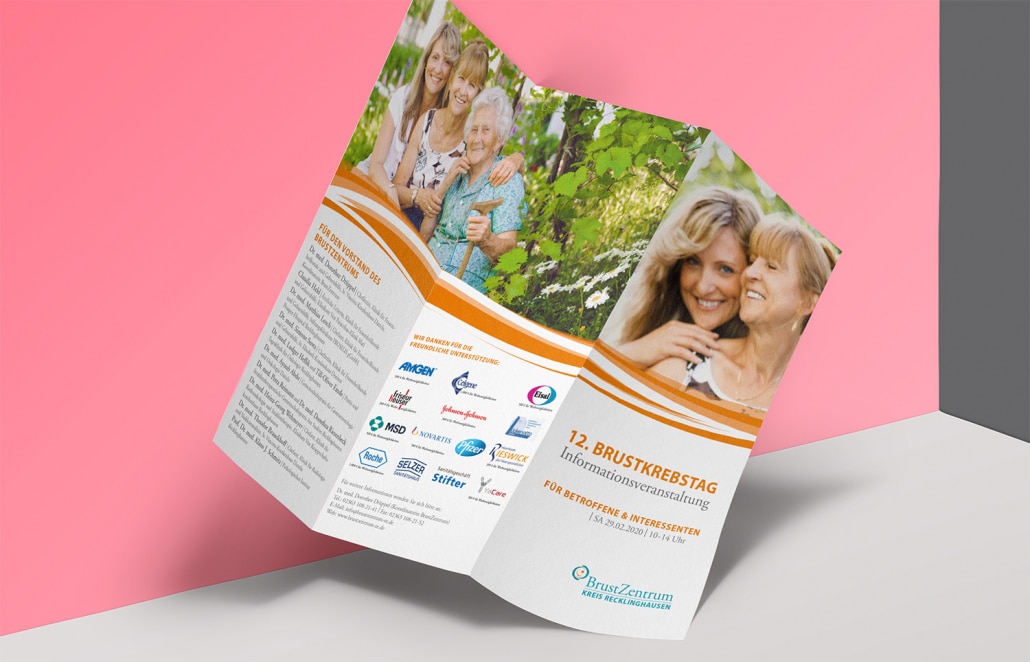 Wir haben uns dieser (für uns Werbefuzzis untypischen) Herausforderung gestellt und begleiten das interdisziplinäre Team aus vier Kliniken bei den jährlich stattfindenden Brustkrebstagen für Ärztekollegen sowie Betroffene und Interessierte mit Einladungs- und Ankündigungsmaßnahmen in Print-, Funk- und digitalen Medien. Dazu gehören Presseberichte ebenso wie personalisierte Direktmailings und auch die Website: www.brustzentrum-re.de